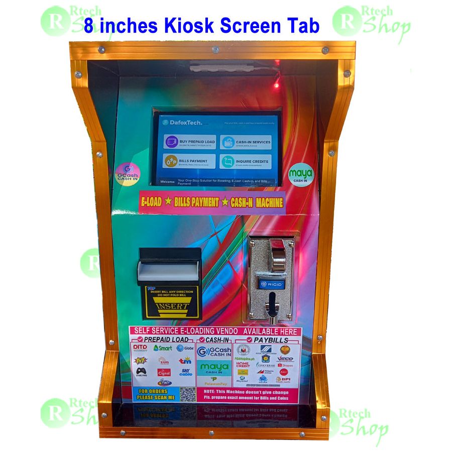 Self Service dafoxtech kiosk Eloading Machine with Gcash Cashin(android type)powered by ecpay